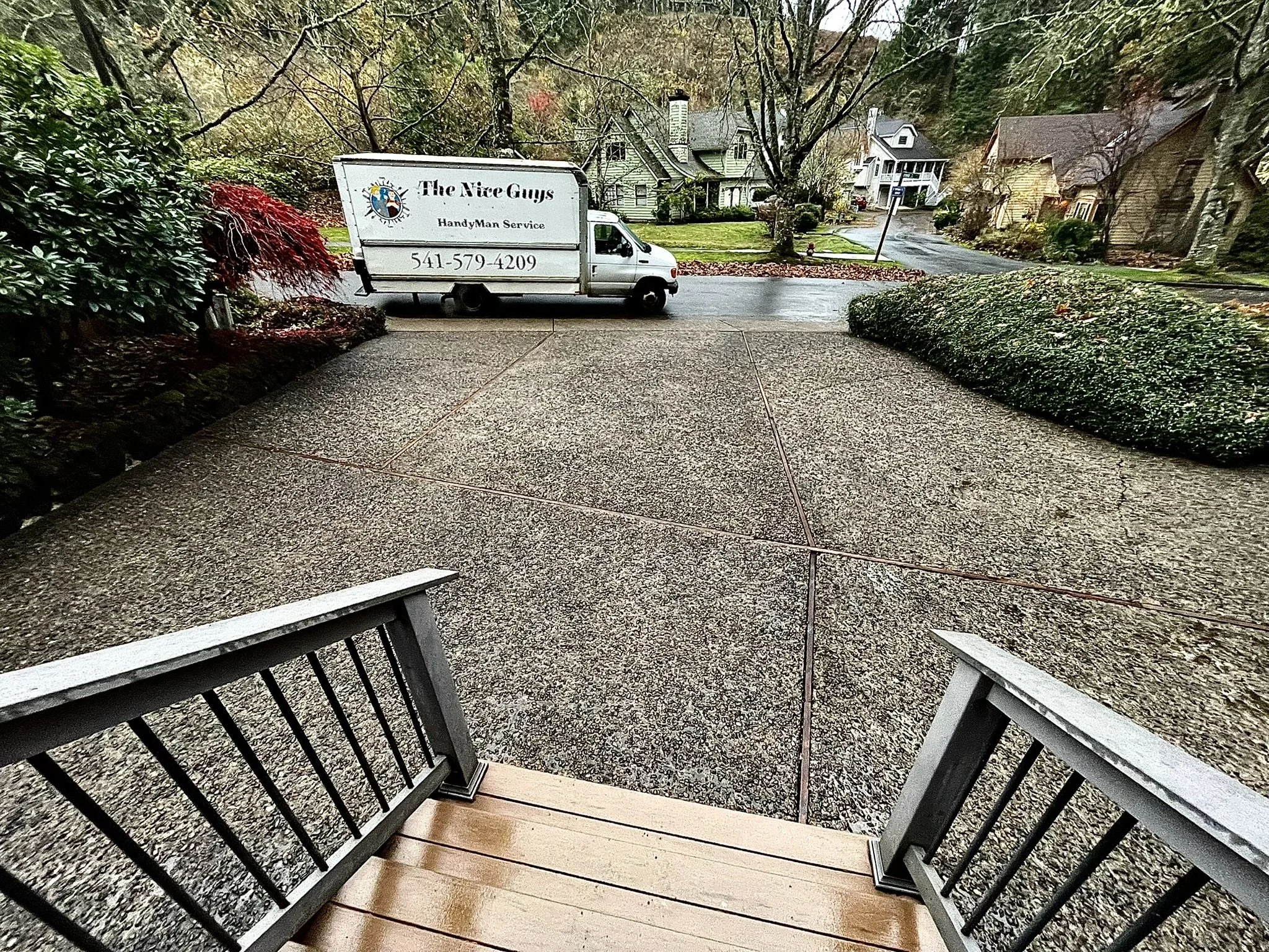Pressure washed sidewalk.