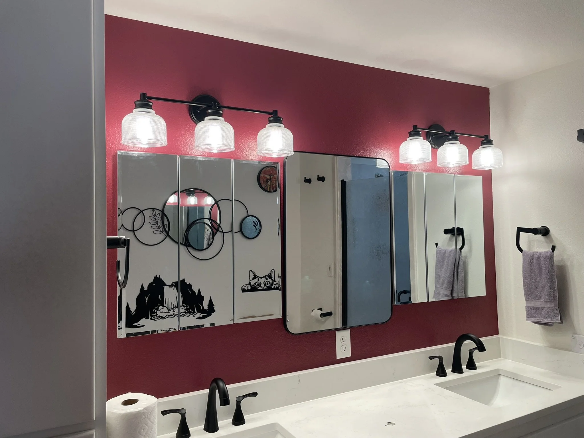 Bathroom trim installation.